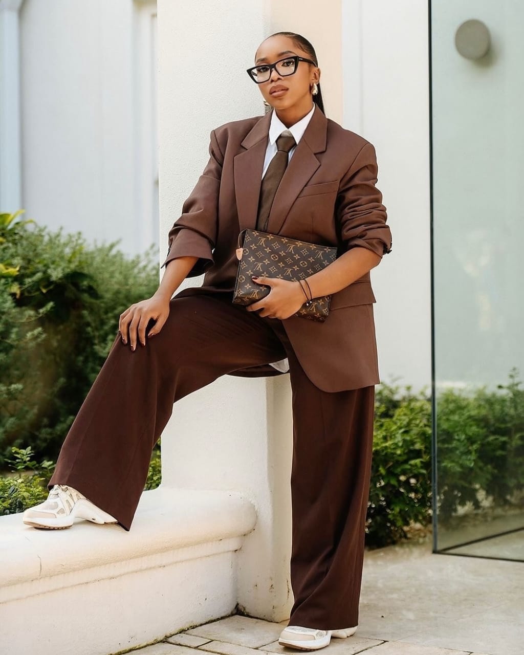 A structured leather clutch paired with an oversized blazer and wide-leg trousers strikes the perfect balance between work-ready and effortlessly cool. To keep the look grounded, reach for a neutral-toned purse—think black, brown, or taupe. The clutch sharpens the relaxed silhouette, adding just the right amount of polish and transforming the ensemble into something that feels intentional yet refreshingly laid-back.