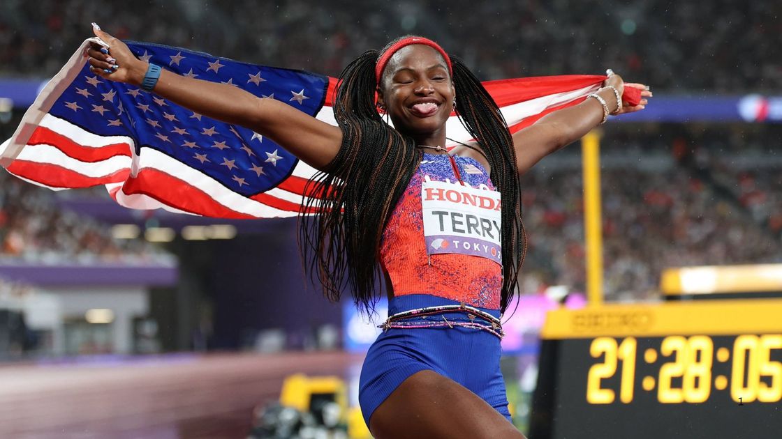 Twanisha Terry specializes in the 100m and has a decorated medal collection of three gold medals as part of the US women’s 4x100m relay team at the 2022, 2023, and 2025 World Athletics Championships. At the Olympics, she was also part of the relay team that won gold in Paris last summer.
