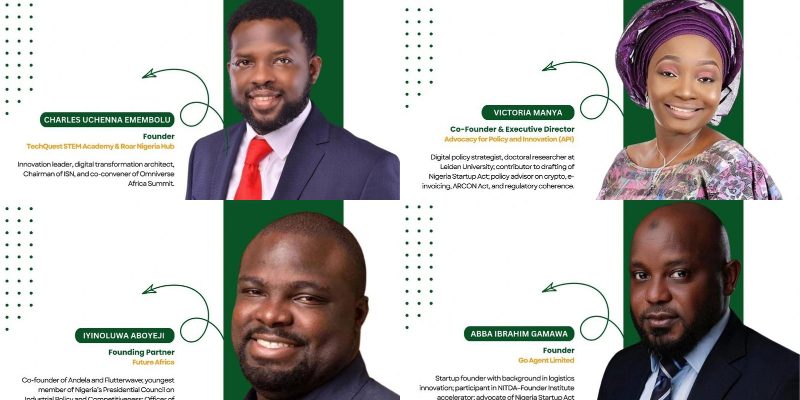 The elected founders are Iyinoluwa Aboyeji, Founding Partner at Future Africa; Charles Uchenna Emembolu, Founder of TechQuest STEM Academy and Roar Nigeria Hub, and Chair of the Innovation Support Network (ISN); Abba Ibrahim Gamawa, Founder of Go Agent Limited; and Victoria Ojoagefu Manya, Co-founder and Executive Director at Advocacy for Policy and Innovation (API).