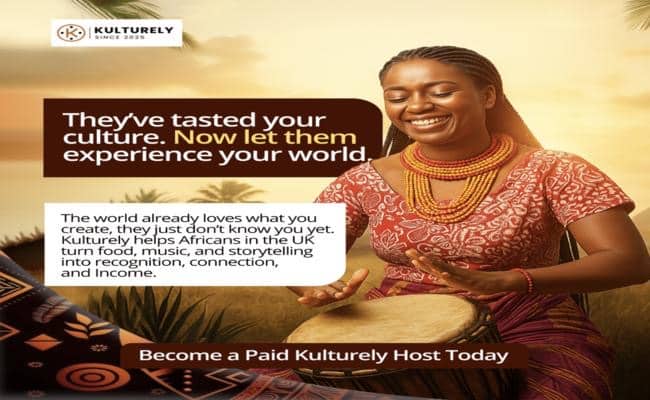 Kulturely, a cultural experience marketplace built for Africans in the diaspora, has officially launched across major UK cities. The platform helps Africans earn by hosting real-life cultural experiences, including food sessions, music lessons, dance basics, city hangouts, lifestyle exchanges, storytelling, and heritage-inspired activities.