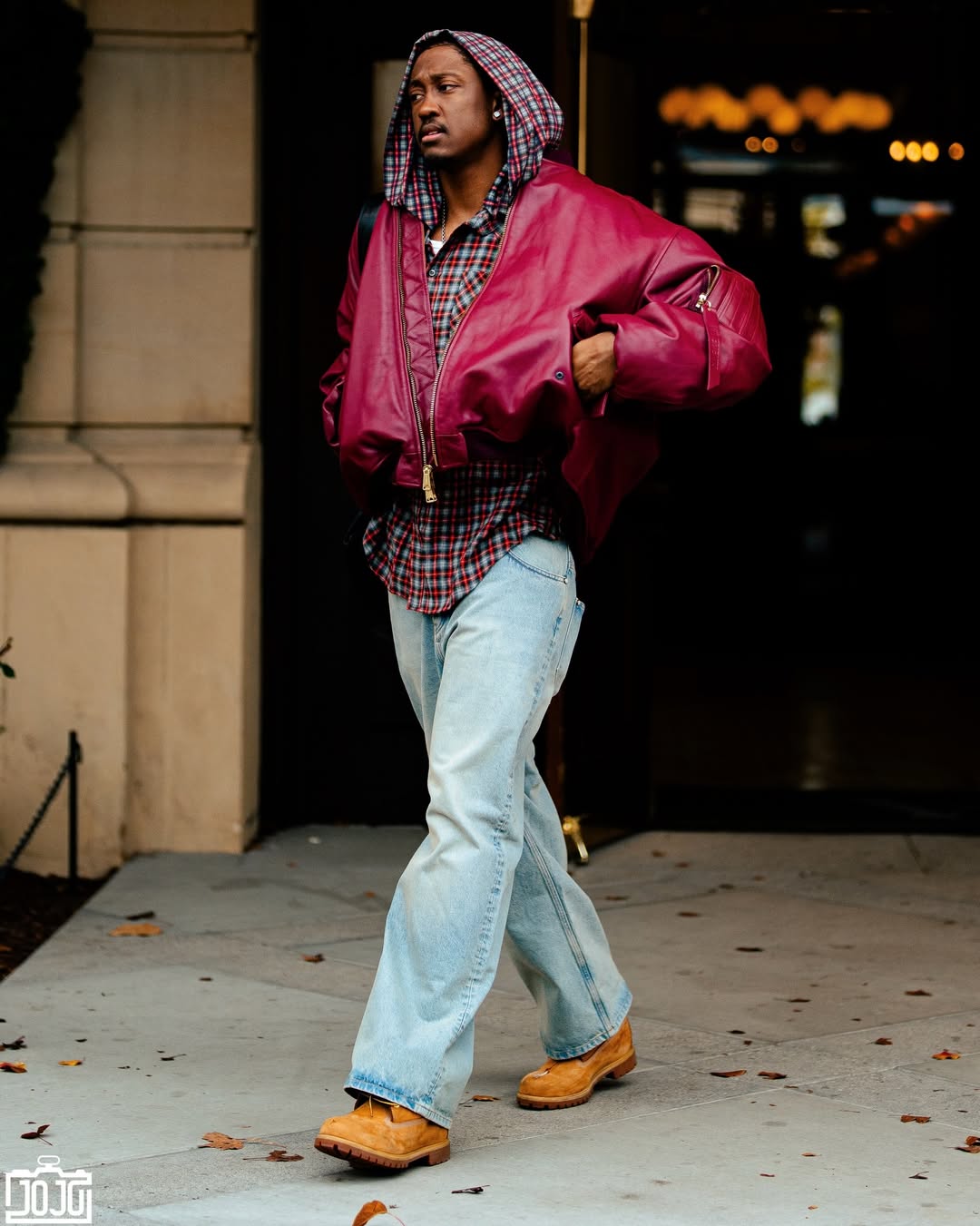 Of course, not every Christmas event calls for tailoring. If your style leans casual, a streetwear-inspired approach may suit you best. A red hooded windbreaker layered over well-fitted pants and clean sneakers strikes the perfect balance between relaxed and stylish. Functional athleisure elements keep the look modern while still delivering that festive pop of color.