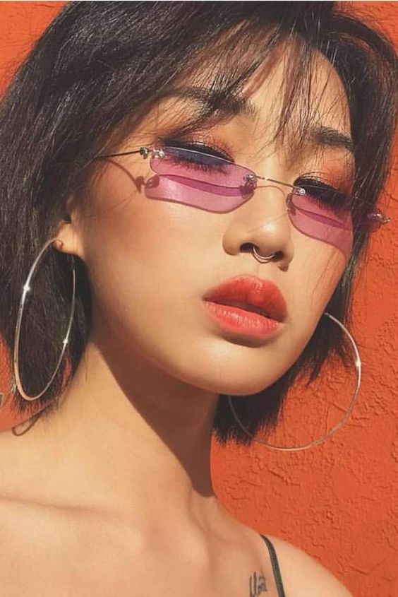 If your personal style leans toward “polished and powerful,” you might gravitate toward office siren glasses. These styles channel a more assertive sophistication: structured, professional, and refined without feeling severe. Paired with a crisp white shirt, a rimless frame instantly delivers that CEO-off-duty energy.